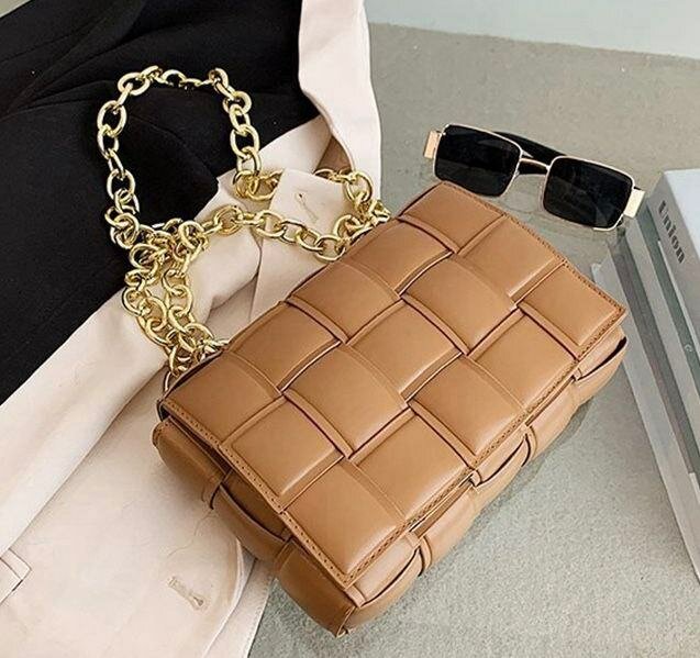 Sac à main en cuir marron avec chaîne dorée. Design élégant et moderne, idéal pour compléter une tenue de soirée ou de jour. Conçu en cuir de haute qualité, il est à la fois durable et stylé.