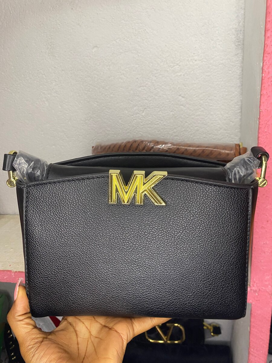Optez pour ce sac à main en cuir noir, parfait pour une touche d'élégance au quotidien. Son design raffiné et son logo doré "MK" ajoutent une sophistication intemporelle à votre tenue. Idéal pour le bureau ou une sortie entre amis. À l'intérieur, assez d'espace pour vos essentiels.