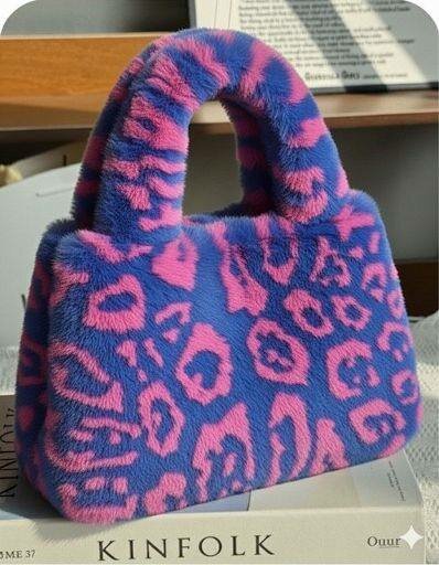 Sac à main doux et confortable en peluche de haute qualité, idéal pour les jeunes femmes. Léopard violet et rose, design unique pour un look chic.