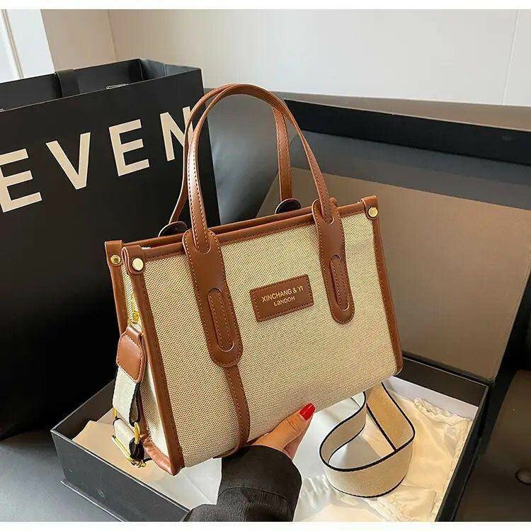Découvrez notre sac à main en toile avec détails en cuir, parfait pour un style chic et décontracté. Idéal pour les sorties quotidiennes et capable de contenir vos essentiels avec élégance.