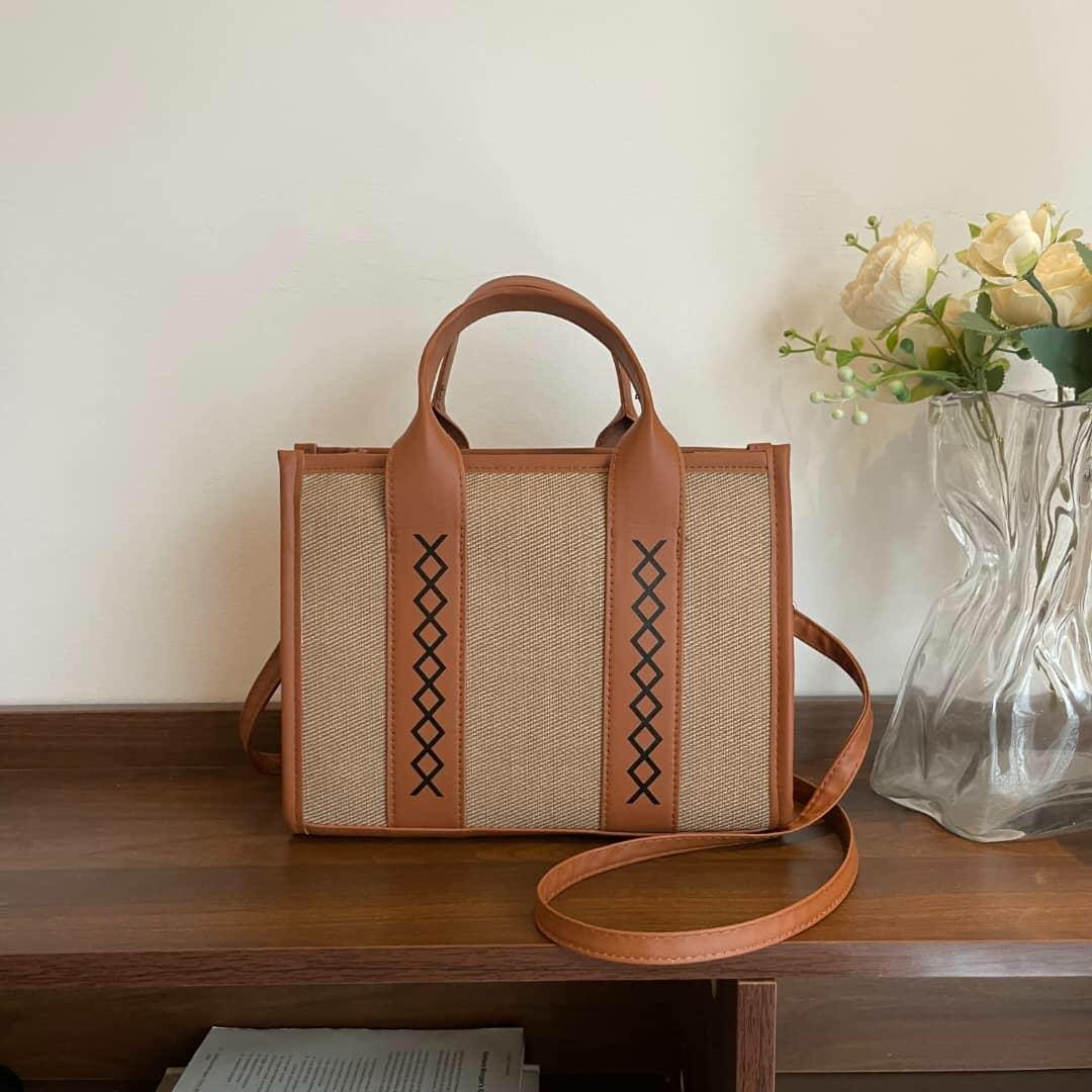 Découvrez ce sac à main chic en toile et cuir de haute qualité. Parfait pour un usage quotidien ou pour des occasions spéciales, il allie style et fonctionnalité. Avec ses poignées robustes et son design moderne, c'est un indispensable pour la mode. Dimensions compactes pour le rangement essentiel. Idéal pour les femmes actives et élégantes.