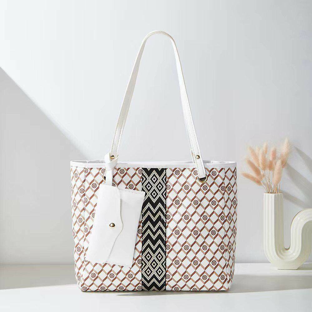 Découvrez ce sac à main en toile, élégant et spacieux, parfait pour toutes vos sorties. Avec son design géométrique unique et sa pochette assortie, il allie style et fonctionnalité. Idéal pour le travail ou le shopping, c'est l'accessoire indispensable pour une touche moderne à votre tenue.