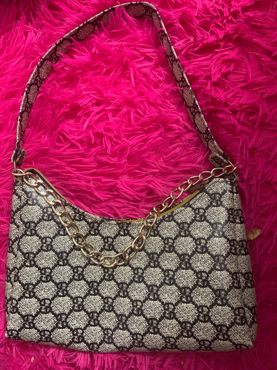 Découvrez ce sac à main élégant avec un motif raffiné et une chaîne dorée. Idéal pour une touche de sophistication à votre tenue. Convient parfaitement pour des sorties entre amis ou des occasions spéciales. Alliez style et praticité avec ce modèle incontournable.
