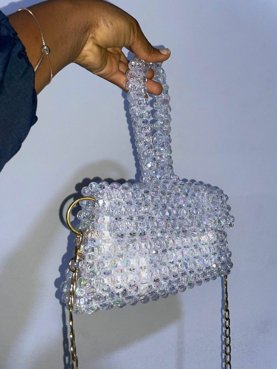 Découvrez notre sac à main en perles, idéal pour ajouter une touche d’élégance à vos tenues. Fait à la main avec des perles scintillantes, il est parfait pour les soirées et occasions spéciales. Sa chaîne dorée et sa poignée originale offrent un style unique et pratique. Un choix chic pour la femme moderne.