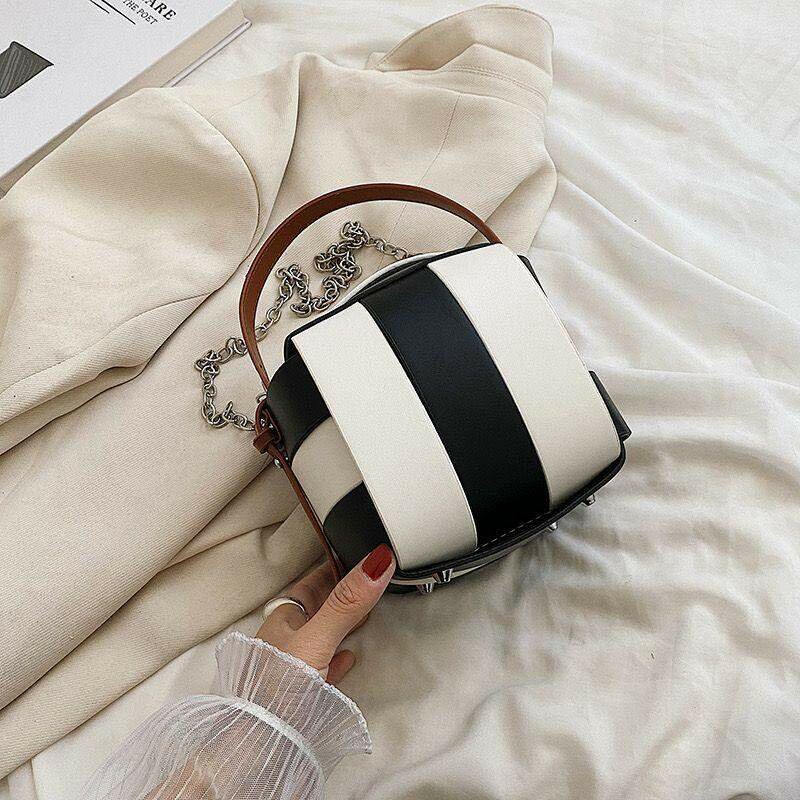 Ajoutez une touche de style à votre tenue avec ce sac à main rayé noir et blanc. Parfait pour les sorties en ville ou les occasions spéciales. Compact mais spacieux, il est l'accessoire idéal pour transporter vos essentiels avec élégance.
