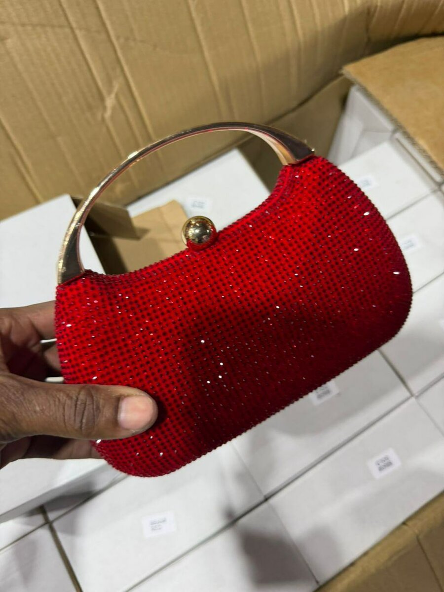 Ajoutez une touche d'élégance à votre tenue avec ce sac à main scintillant en strass rouge. Parfait pour les soirées et occasions spéciales, il offre un espace suffisant pour vos essentiels.