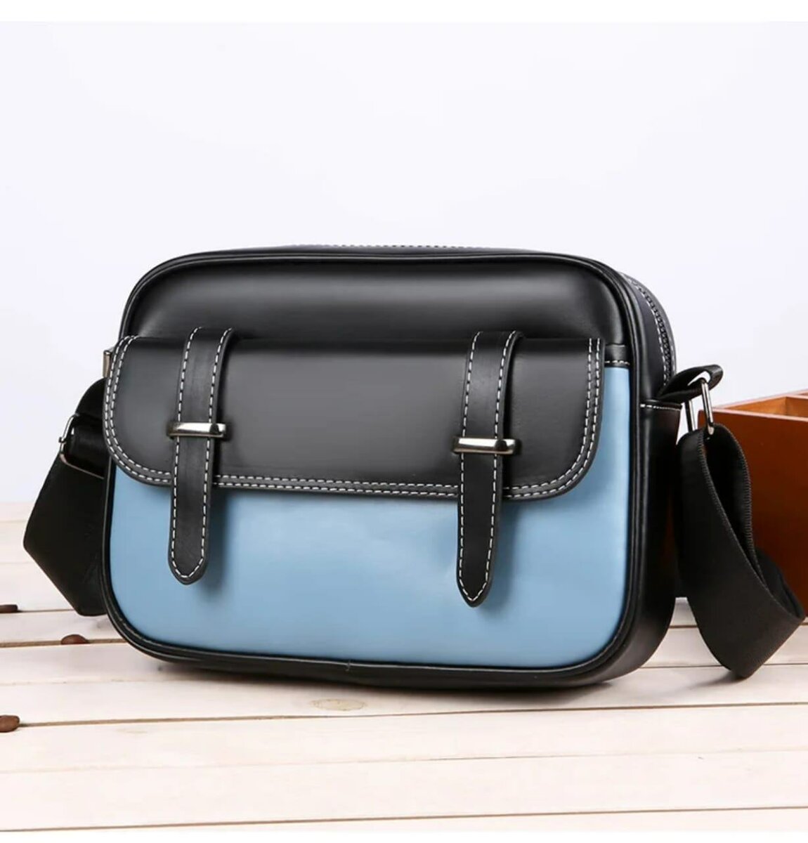 Sac banane en cuir bleu et noir, design moderne et élégant. Idéal pour les sorties décontractées ou les voyages. Conçu pour offrir confort et style.
