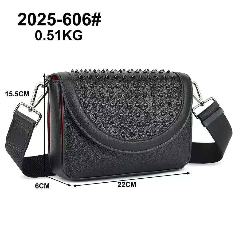 Ce sac bandoulière noir élégant est doté de clous stylisés pour un look moderne et audacieux. Compact mais spacieux, il est parfait pour transporter vos essentiels quotidiens. Avec sa sangle réglable, il s'adapte à votre style de vie dynamique. Un choix parfait pour celles qui aiment allier mode et praticité.