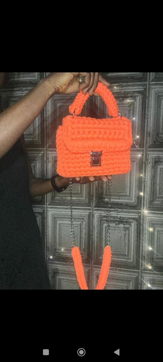 Explorez l'élégance décontractée de ce sac bandoulière en crochet. Avec sa chaîne chic et ses couleurs vives, il est parfait pour une touche moderne et artisanale à votre tenue. Un choix idéal pour une sortie en ville ou un événement spécial.