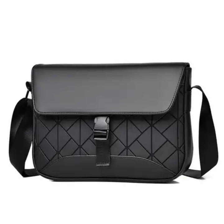 Élégant sac bandoulière pour femme en cuir noir avec motif géométrique. Parfait pour un usage quotidien ou pour des occasions spéciales.