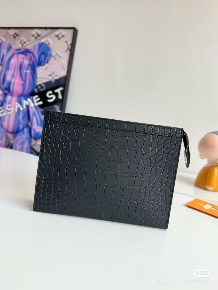 Pochette en Cuir Noir Homme
