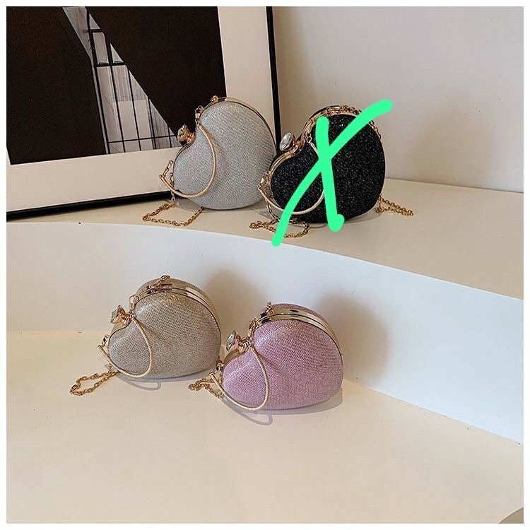 Élégant sac en forme de cœur avec paillettes brillantes et chaîne dorée. Parfait pour soirées et occasions spéciales. Compact et chic, il ajoute une touche glamour à votre tenue.