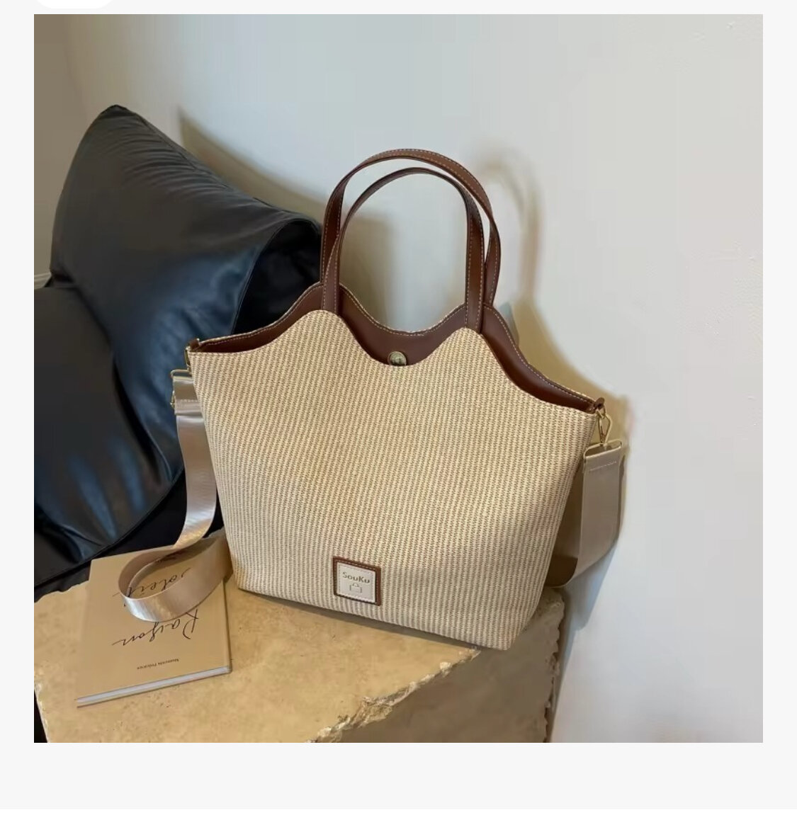 Sac cabas élégant en paille et cuir marron pour femme. Léger et spacieux, idéal pour le quotidien ou les sorties. Fabriqué avec des matériaux de qualité, il offre un style intemporel et chic.
