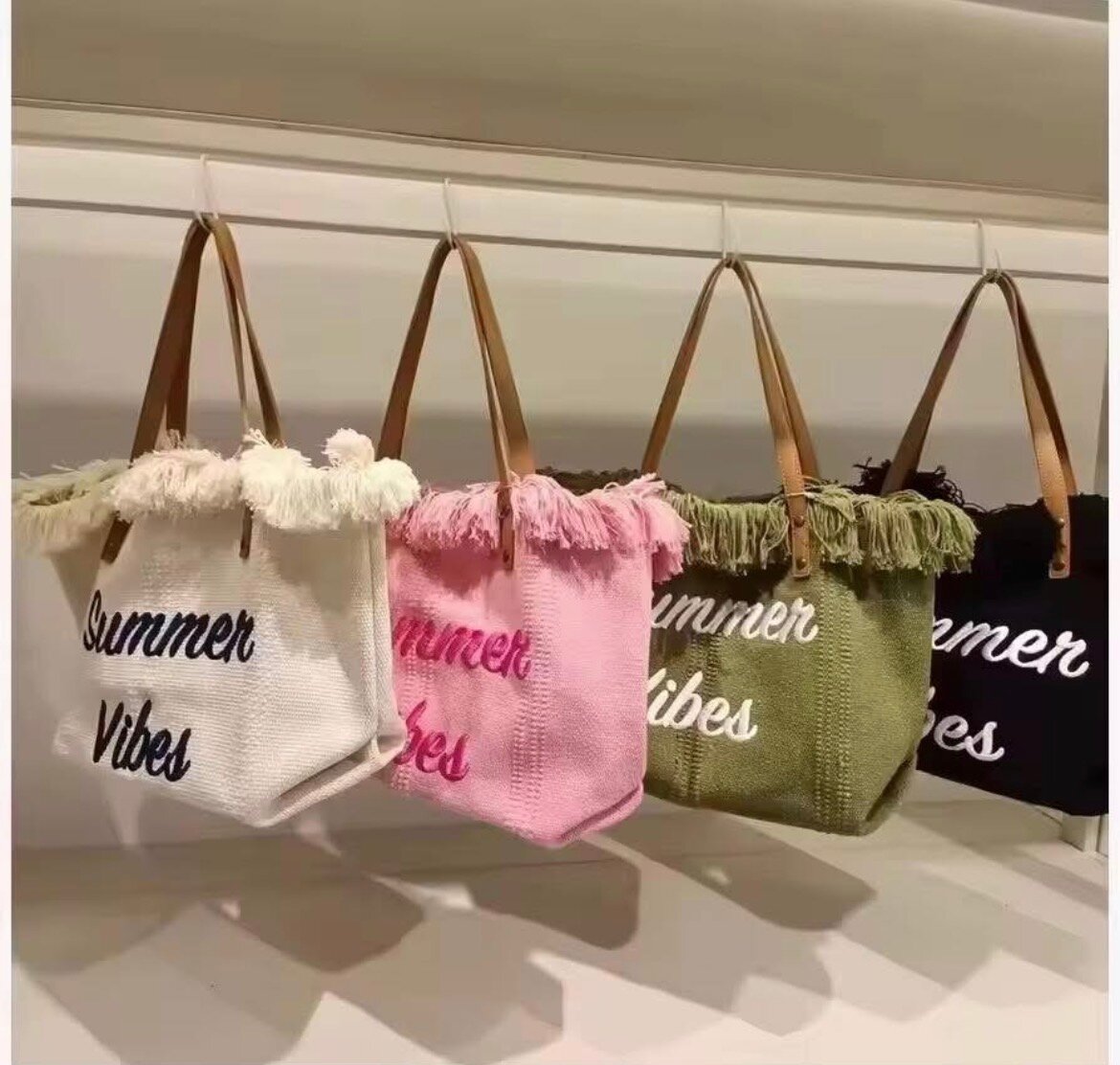 Ce sac cabas en toile avec des poignées en cuir est parfait pour l'été. Disponible en plusieurs couleurs, il arbore l'inscription "Summer Vibes" pour ajouter une touche de fraîcheur à votre style. Idéal pour la plage, le shopping ou une promenade en ville, il allie praticité et tendance. Léger et spacieux, c'est l'accessoire indispensable pour vos journées ensoleillées.