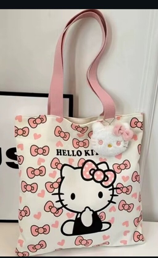 Sac cabas en toile avec motif Hello Kitty. Idéal pour le shopping ou les sorties quotidiennes, cet accessoire charmant est à la fois pratique et mignon. Disponible avec l'accessoire