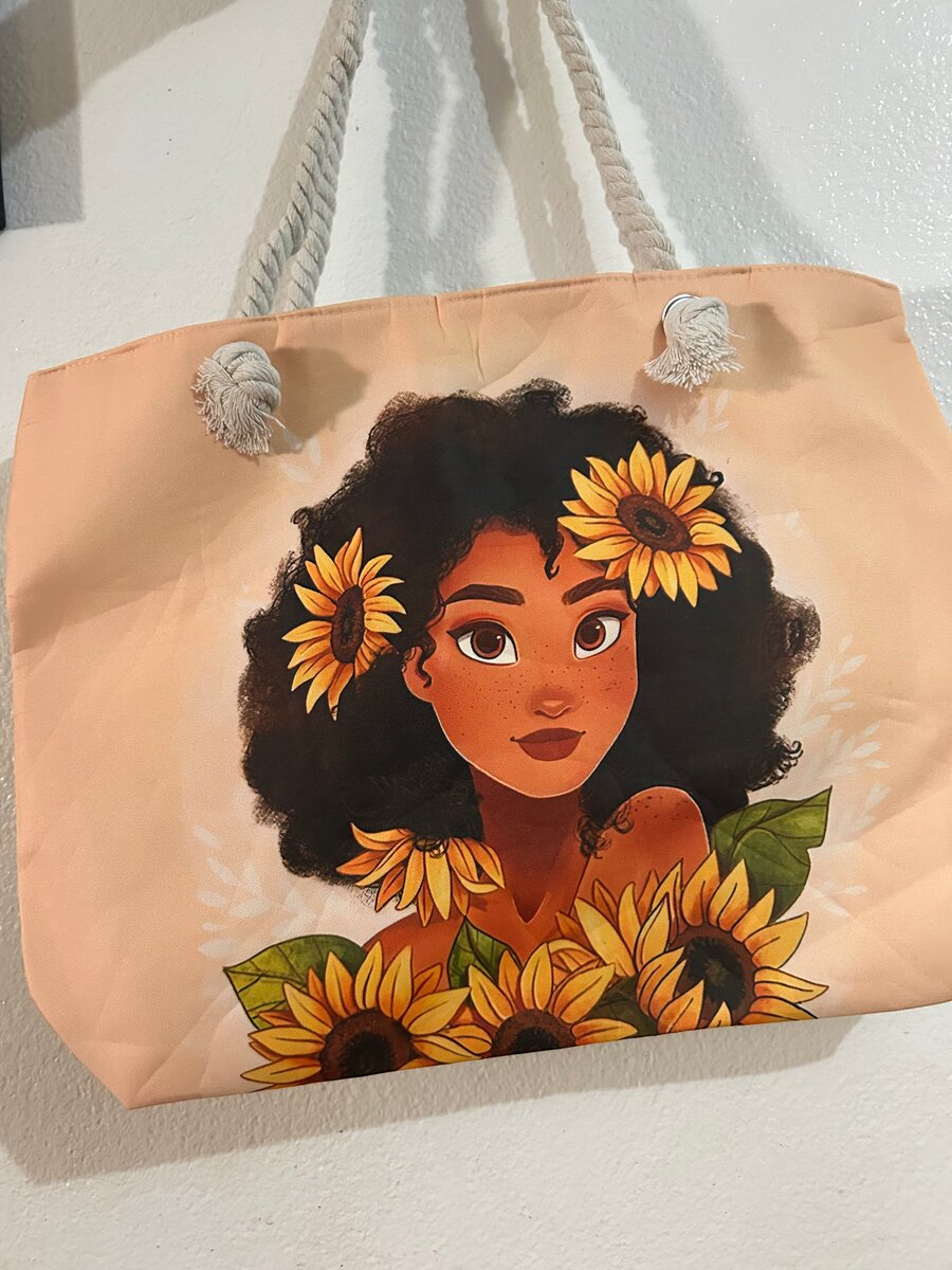 Ce sac cabas élégant arbore un design unique avec un motif de tournesols et un personnage artistique. Fabriqué avec des matériaux durables, il est parfait pour vos courses ou une journée à la plage. Les poignées robustes assurent un port confortable. Idéal pour ceux qui aiment les accessoires distinctifs et stylés.