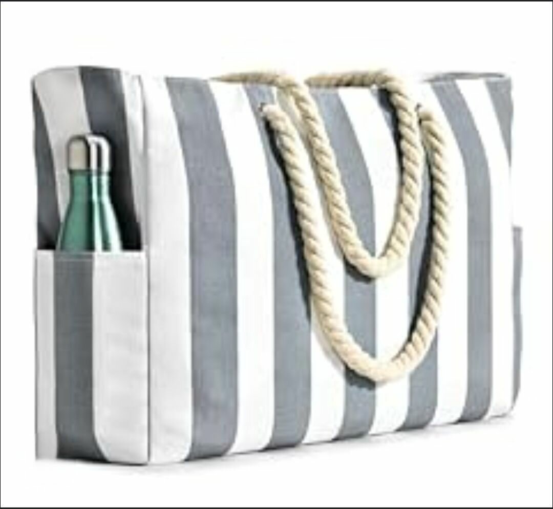 Optez pour ce sac de plage à rayures élégantes, idéal pour vos voyages, séances de yoga ou journées shopping. Avec sa grande capacité, ses poches pratiques et ses poignées en corde de coton robuste, il est parfait pour organiser et transporter vos essentiels en toute légèreté. Un choix élégant et fonctionnel pour toutes vos aventures estivales.