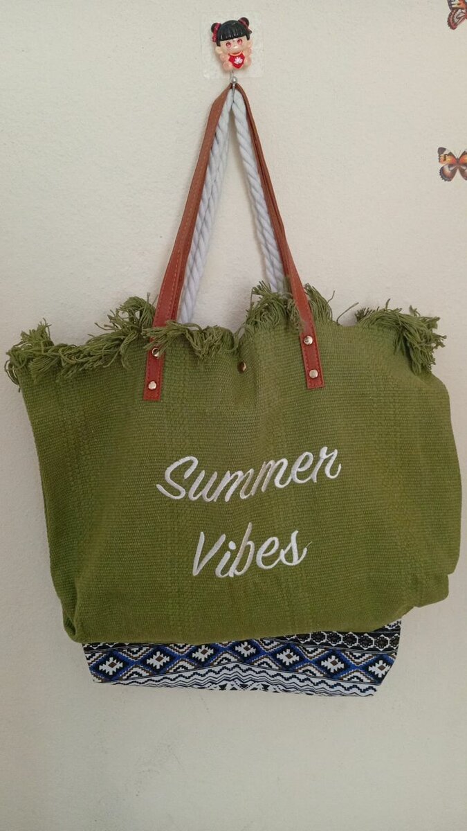 Adoptez le style estival avec ce sac de plage "Summer Vibes". Conçu pour transporter vos essentiels, il est parfait pour une journée relaxante au bord de la mer. Sa toile robuste et ses anses confortables en cuir garantissent durabilité et praticité. Idéal pour des vacances ensoleillées!