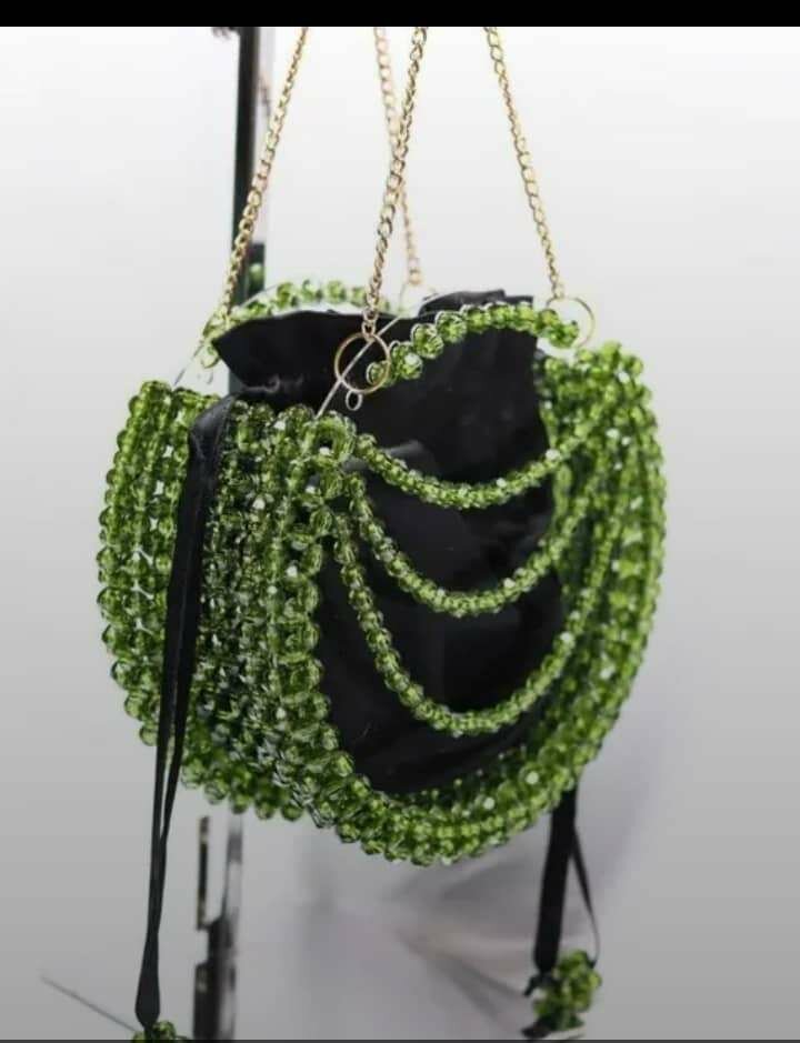 Ajoutez une touche de glamour à votre tenue avec ce sac élégant en perles. Parfait pour les soirées ou les occasions spéciales, ce sac se distingue par ses perles vertes éclatantes et sa chaîne dorée. Sa taille compacte le rend facile à porter tout en ajoutant une note d'élégance. Idéal pour les femmes à la recherche d'un accessoire unique et tendance.