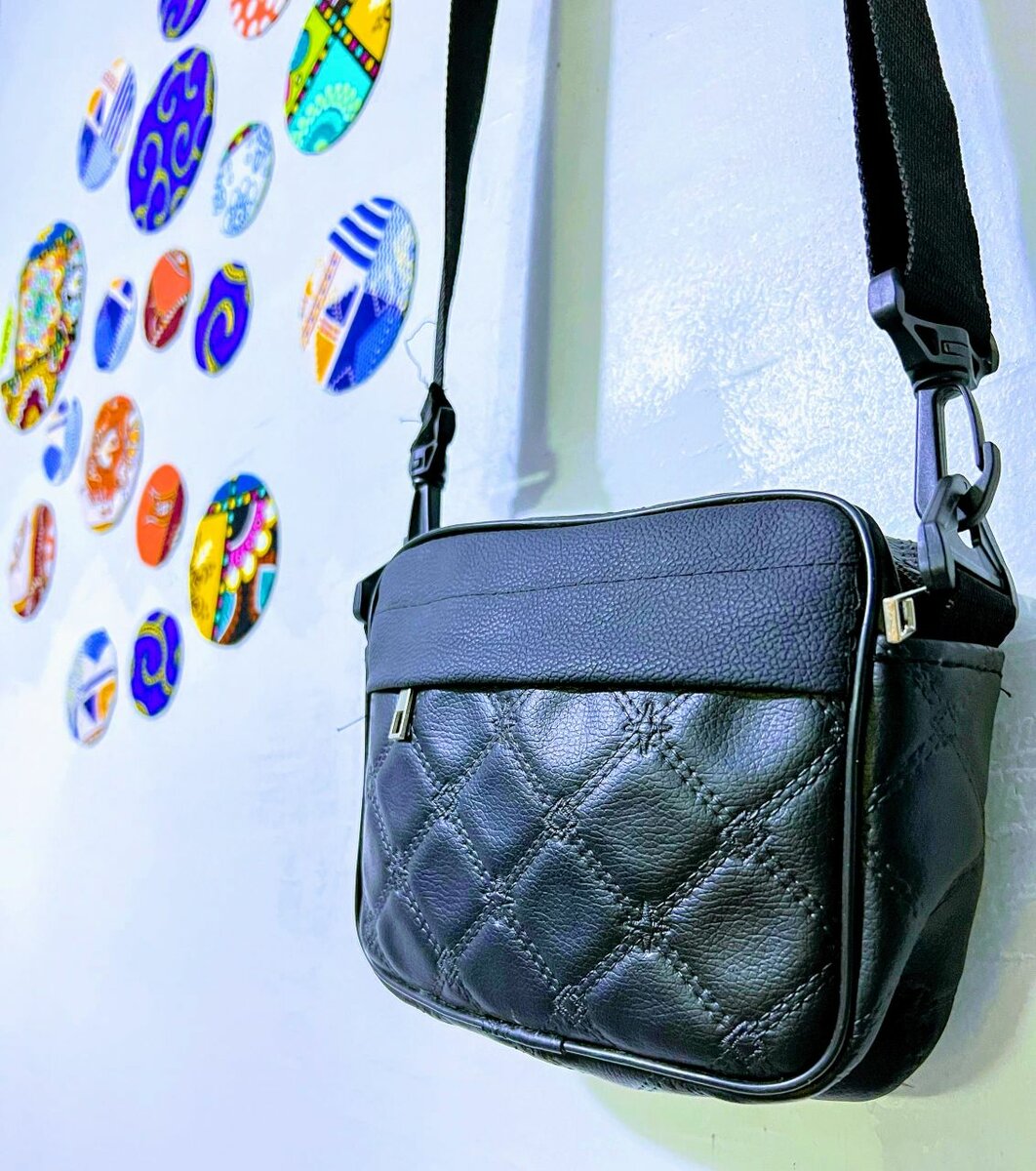 Sac en bandoulière pour jeune en pagne multicolore et en CUIRE