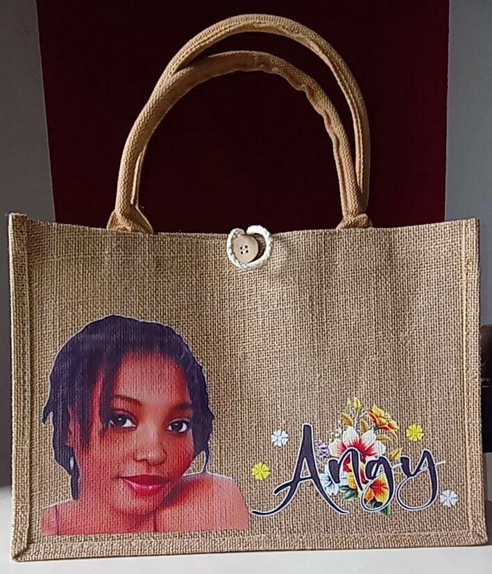 Optez pour ce sac en jute personnalisé, parfait pour vos courses quotidiennes. Durable et écologique, il allie style et praticité. Son design unique avec photo le rend idéal pour offrir comme cadeau spécial.