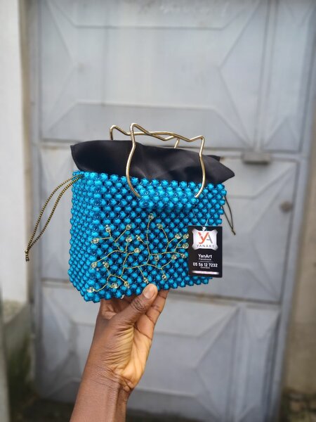 Sac à main perles bleu élégant
