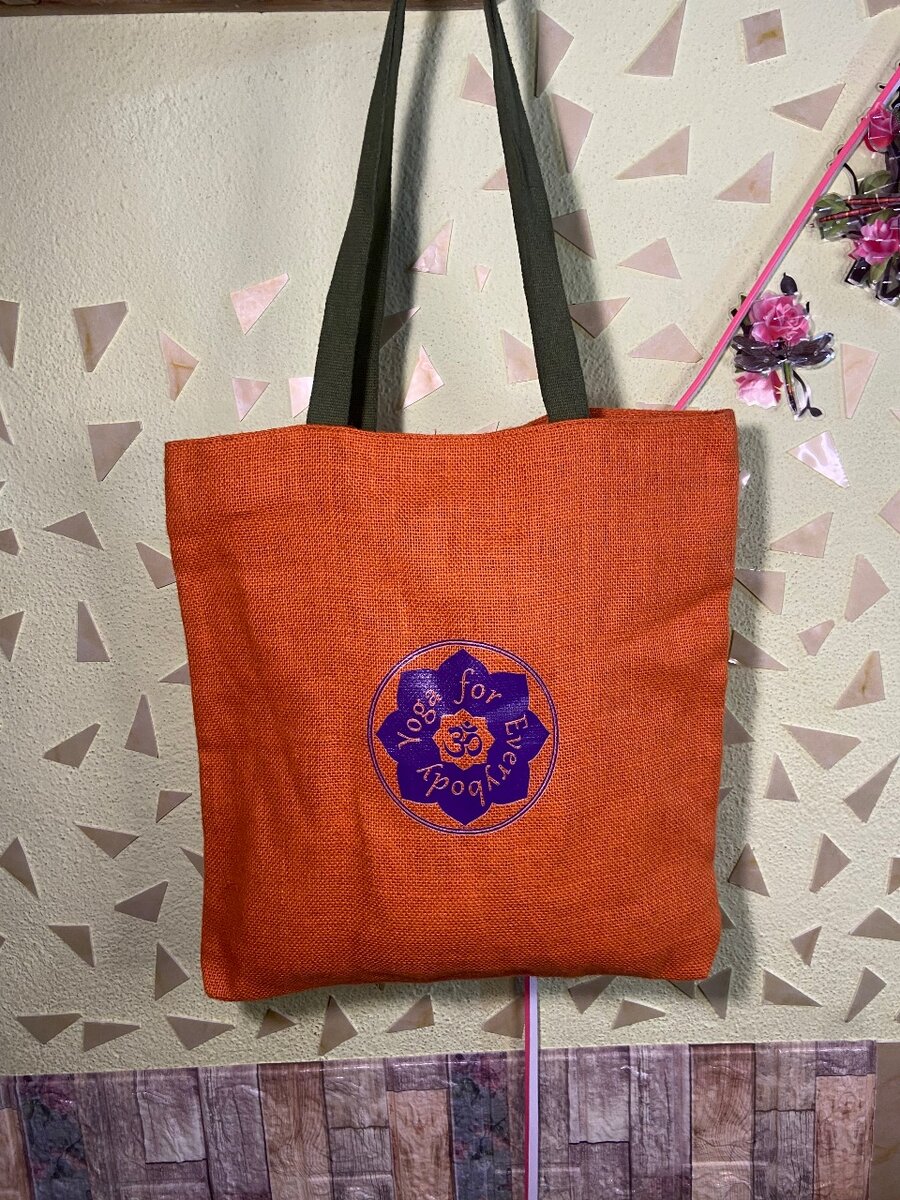 Sac en toile de jute orange avec motif yoga, idéal pour le shopping ou le yoga. Solide et écologique, parfait pour un style de vie durable. Offrez-vous ce sac polyvalent pour toutes vos sorties.