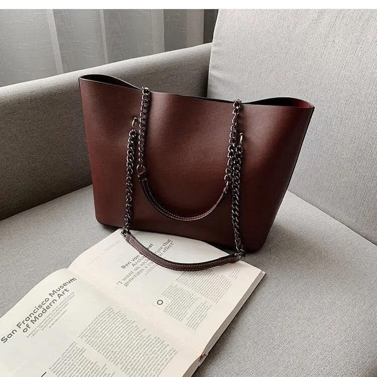 Découvrez notre sac fourre-tout en cuir véritable avec chaînes élégantes, parfait pour un style chic au quotidien. Disponible en plusieurs couleurs classiques, il est idéal pour toutes occasions. Son design spacieux et ses matériaux de qualité en font un choix pratique et durable. Un indispensable pour votre garde-robe!