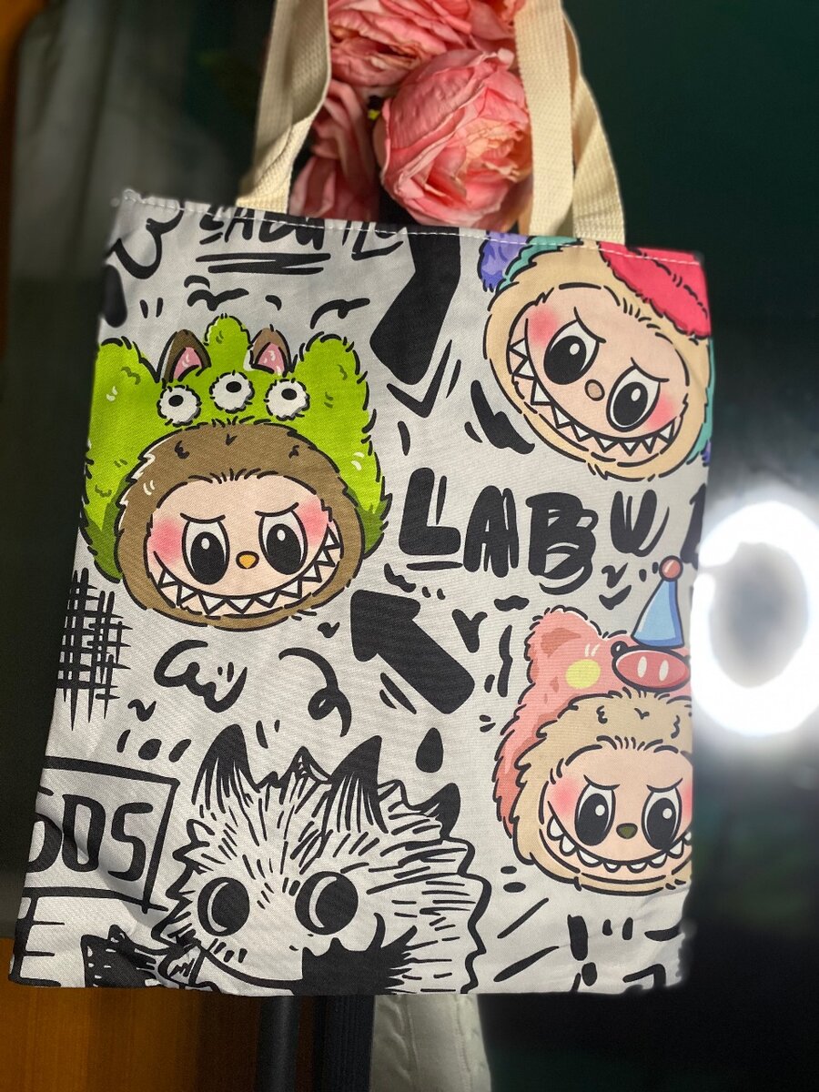 Découvrez ce sac fourre-tout unique avec des motifs animés ludiques qui captiveront l'attention. Fabriqué en toile durable, il offre un grand espace de rangement pour vos articles quotidiens. Parfait pour l'école, le travail ou les sorties en ville. Ajoutez une touche de couleur et de fun à votre journée avec ce sac plein de personnalité !