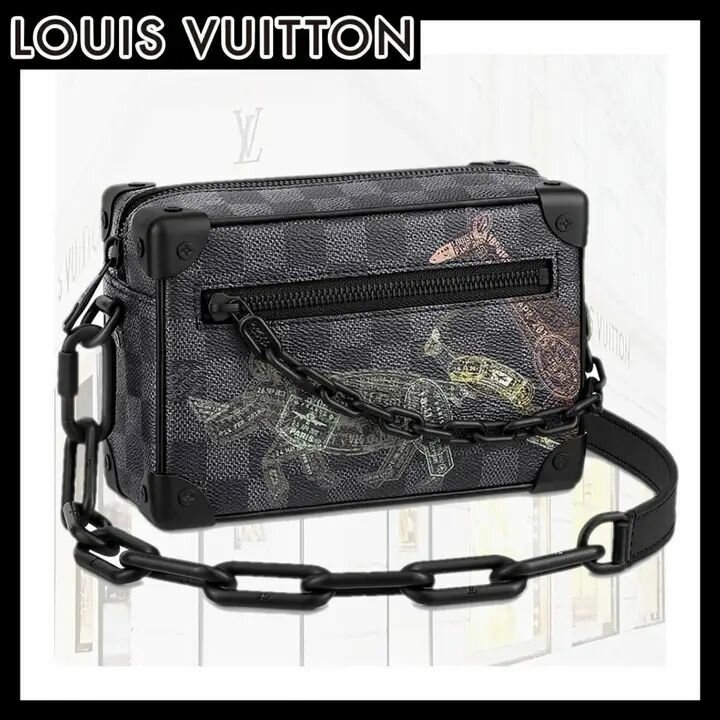 Sac Louis Vuitton pour homme, noir avec chaîne et détails métalliques. Élégant et pratique, idéal pour un usage quotidien ou professionnel.