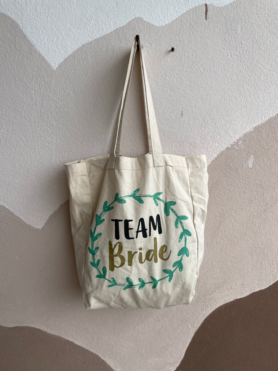 Optez pour ce sac en toile élégant et pratique avec l'inscription "Team Bride". Parfait pour les enterrements de vie de jeune fille, il est spacieux et durable.