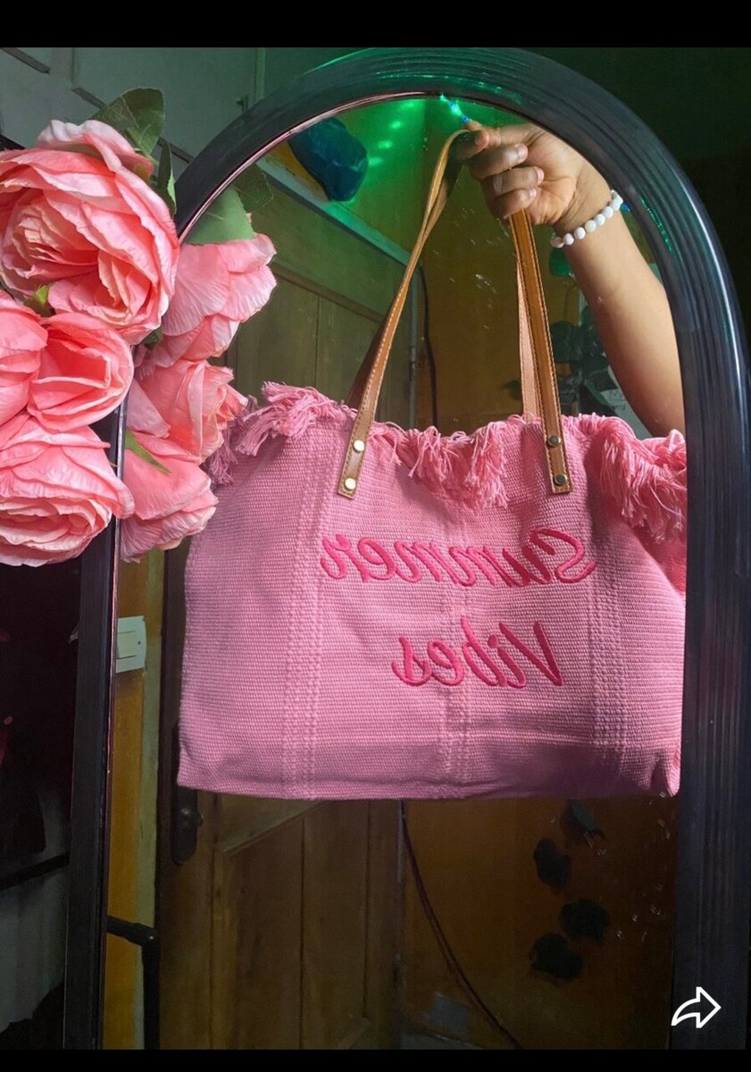 Ce sac en toile est idéal pour l'été avec son design "Summer Vibes". Parfait pour la plage ou les sorties en ville, il combine style et fonctionnalité. Ses anses en cuir ajoutent une touche d'élégance.