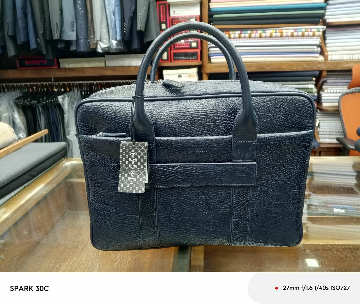 "Sacoche élégante en cuir bleu marine 100% authentique de la marque Tergan. Conçu pour protéger votre ordinateur portable avec style, ce sac présente des finitions en cuir de haute qualité et des poches intérieures en fermeture éclair pour un rangement sécurisé de vos accessoires. Le corps du sac est orné de motifs légèrement pointillés