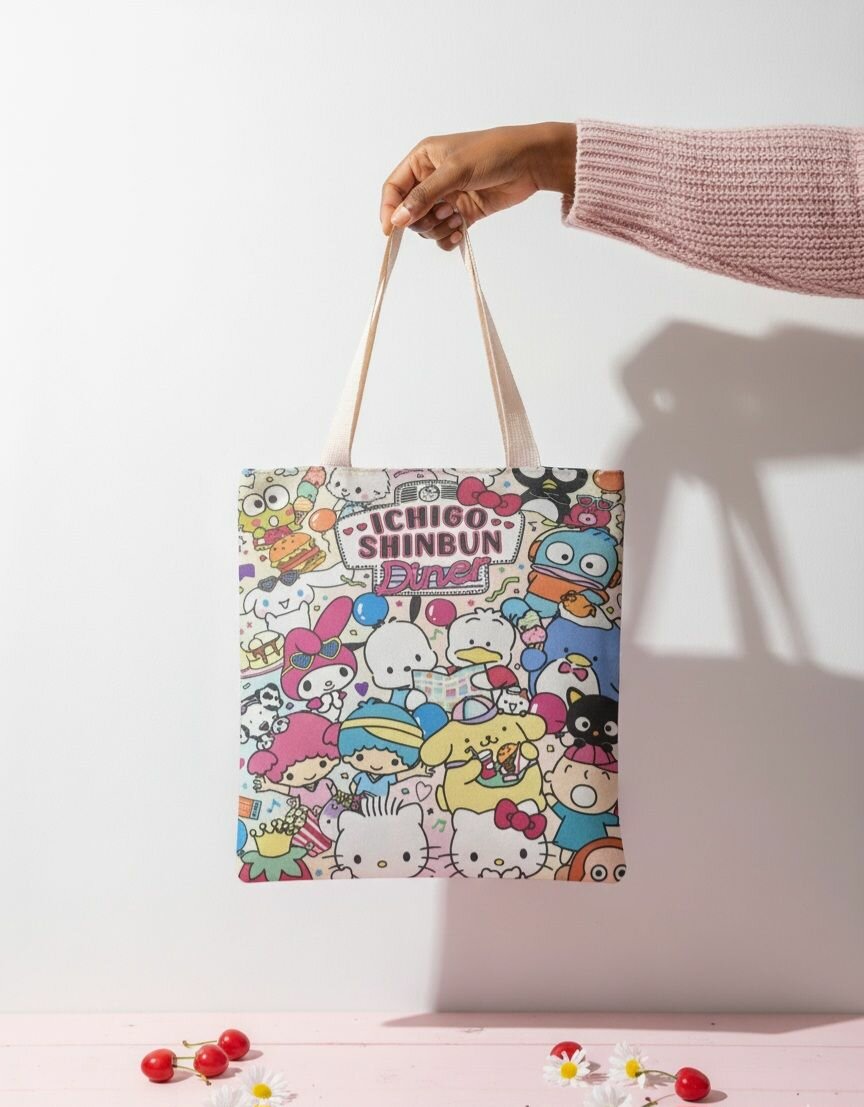 Élégant sac totebag avec design Ichigo Shinbun. Idéal pour les courses, l'école ou un usage quotidien. Fabriqué avec des matériaux durables, ce sac est parfait pour les fans de motifs mignons et colorés. Compact et pratique pour transporter vos essentiels avec style.