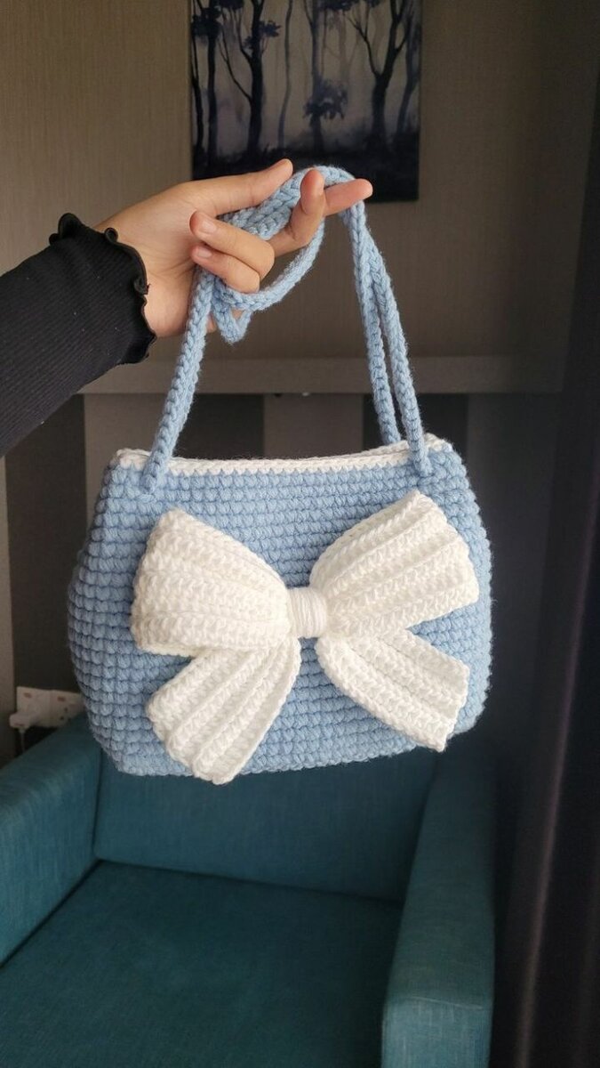 Découvrez ce charmant sac tricoté à la main en bleu avec un élégant nœud blanc. Parfait pour un style décontracté, il ajoute une touche d'originalité à votre tenue. Idéal pour une sortie en ville ou un usage quotidien. Faites une déclaration de mode avec ce sac unique!