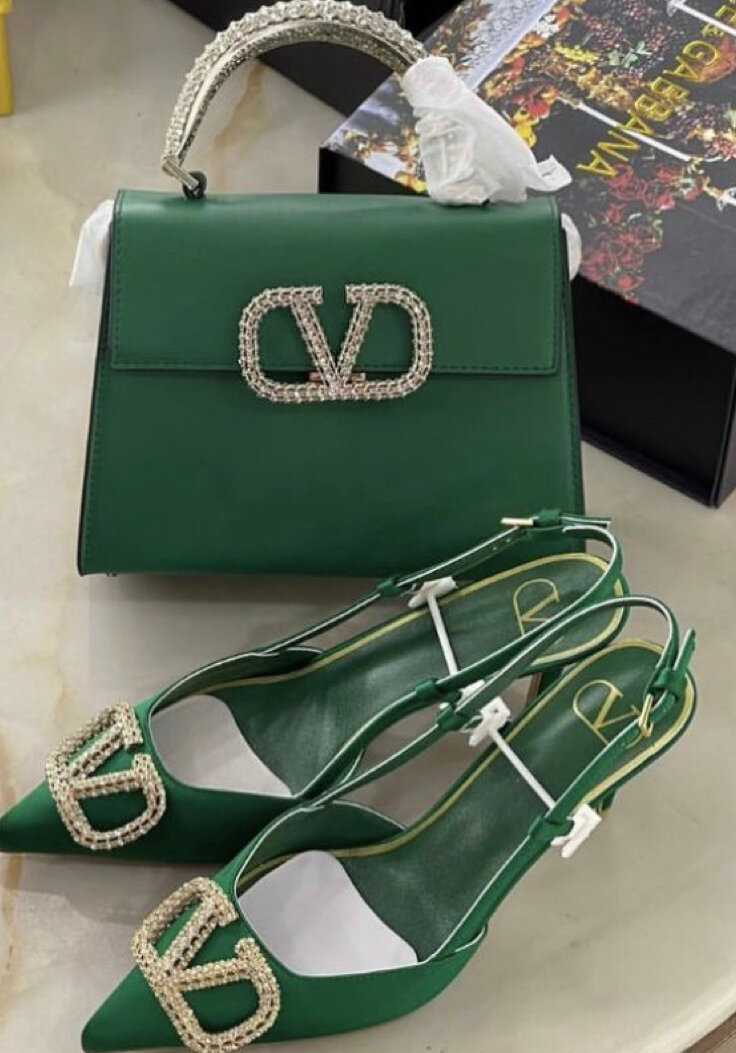 Découvrez cet ensemble chic comprenant un sac à main vert avec des détails en strass et des escarpins assortis. Idéal pour une sortie élégante ou une occasion spéciale, cet ensemble allie style et sophistication pour sublimer votre look.