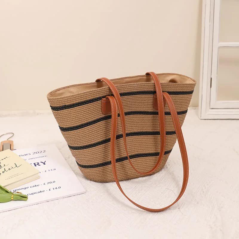 Sac cabas en paille avec bandes