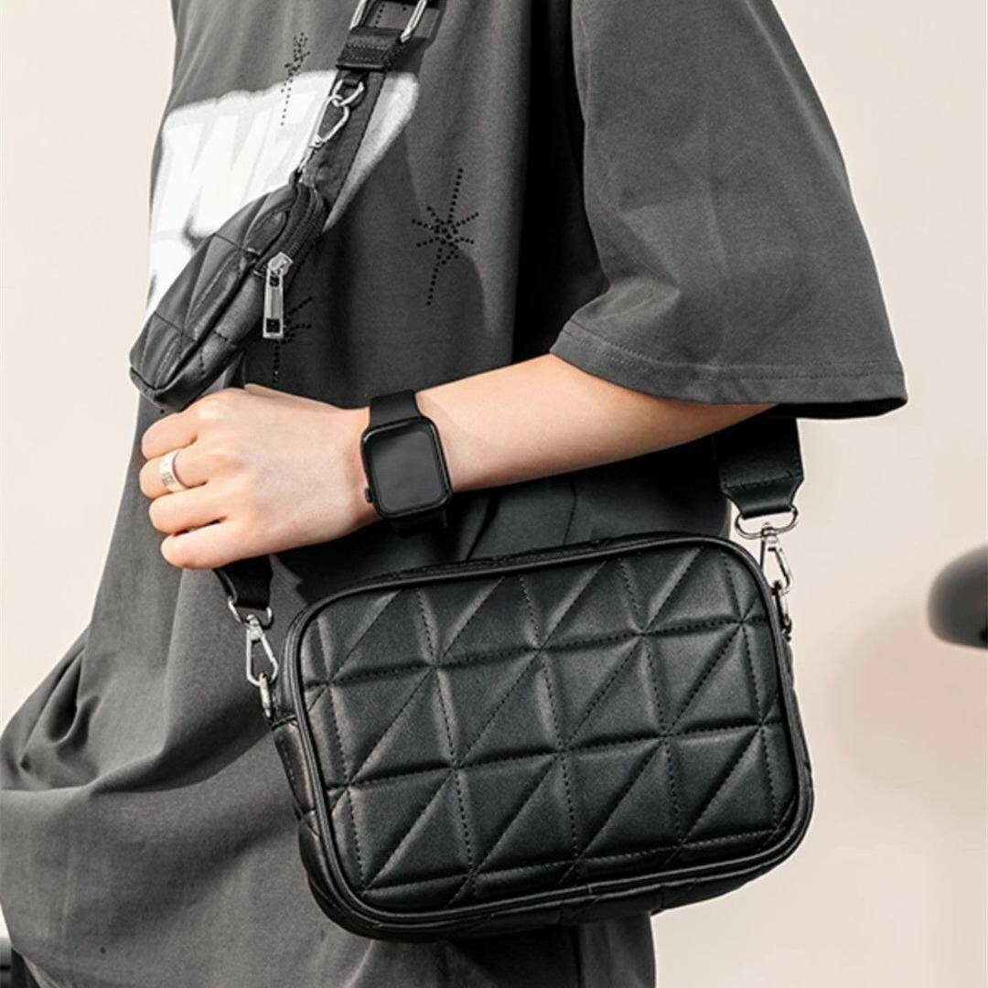 Découvrez notre sacoche bandoulière en cuir, parfaite pour un style contemporain et pratique. Fabriquée avec des matériaux de haute qualité, elle est idéale pour transporter vos essentiels au quotidien. Son design matelassé ajoute une touche d'élégance. Choix parfait pour les déplacements urbains.