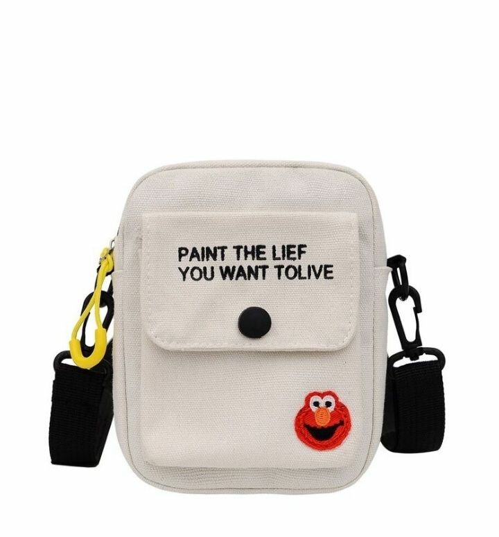 Sacoche en toile avec bandoulière réglable, parfaite pour un style décontracté. Idéale pour transporter vos essentiels au quotidien. Design unique avec motif coloré.