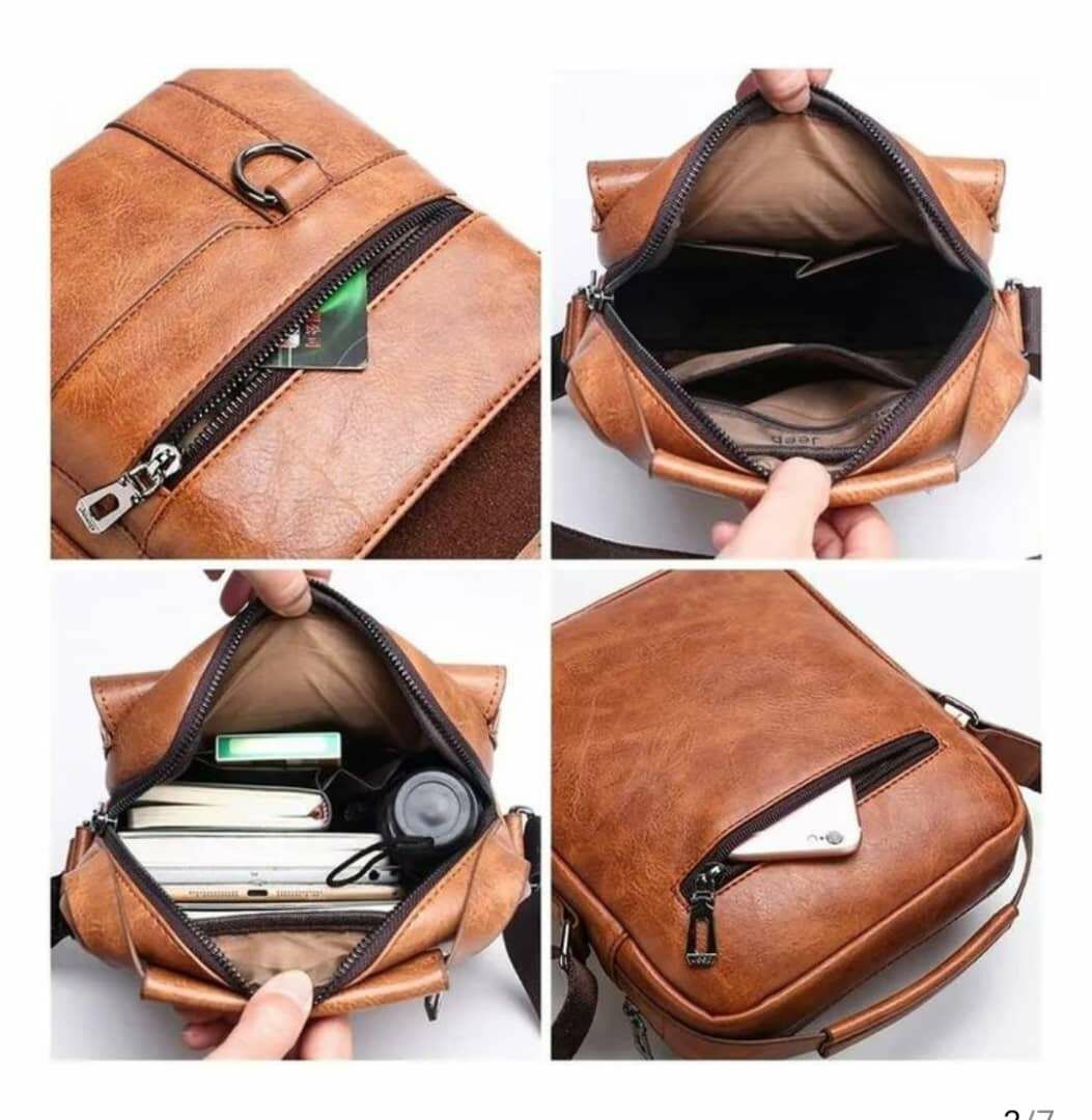 Sacoche élégante en cuir marron pour homme. Idéale pour les affaires quotidiennes, avec poches multiples pour rangement optimisé. Élégance et fonctionnalité réunies.
