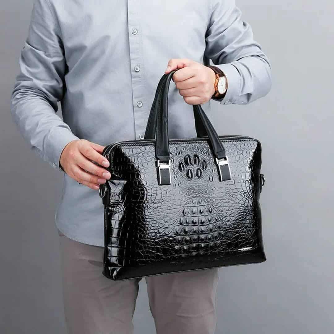 Adoptez un style raffiné avec cette sacoche homme en simili-cuir crocodile, idéale pour les professionnels. Parfaite pour transporter vos documents et appareils avec élégance. Compatible avec un style casual ou business.