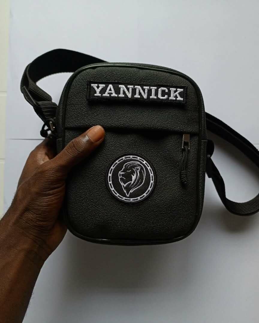 Sacoche KINGDOM. Sacoche en gomme, 3 poches (recto, verso, grande principale) NB: Nom détachable, possibilité d'en faire plusieurs en raison de 1000fr par surplus de nom. Livraison et expédition à vos frais.