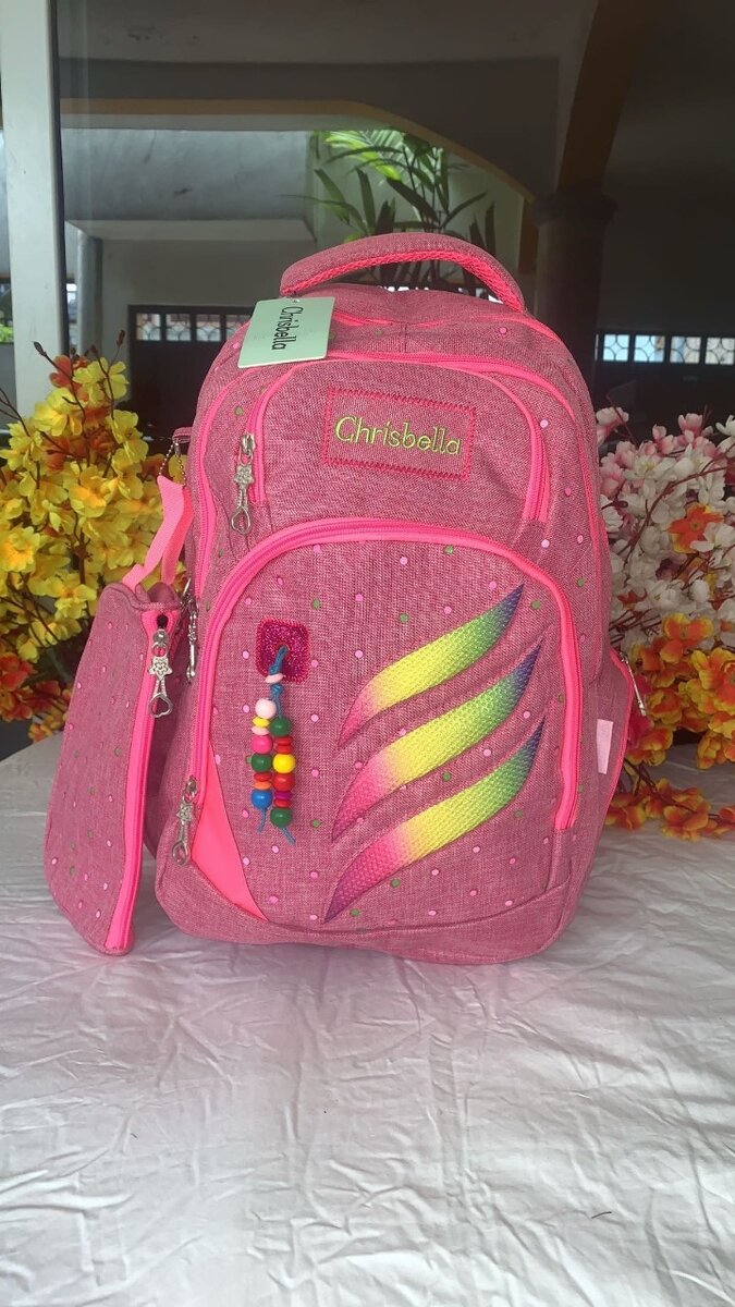 Ce cartable rose, orné de motifs colorés vibrants, est idéal pour les écoliers. Doté de poches spacieuses, il garantit un transport facile des livres et fournitures. Un choix parfait pour la rentrée !