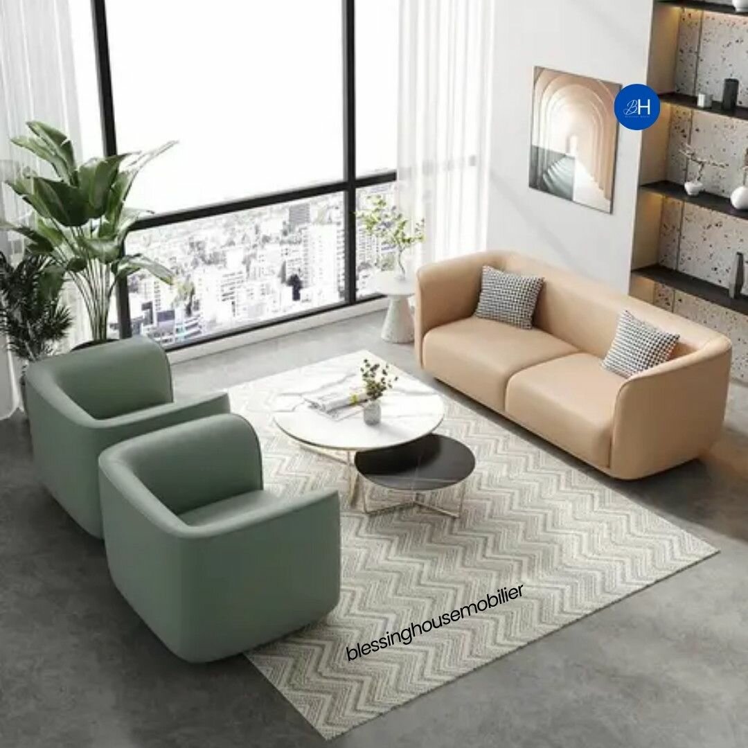 Salon 4 places. (2+1+1) En simili cuir ou tissu. NB : Confection sur mesure (Maximum 1 semaine avant livraison).