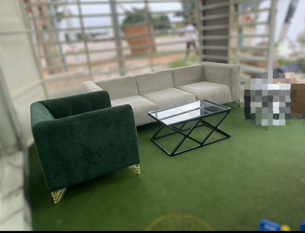Ajoutez une touche d'élégance à votre espace avec cet ensemble de salon contemporain. Comprend un canapé d'angle spacieux, un fauteuil en velours vert et une table basse en verre élégante. Idéal pour recevoir des invités ou se détendre en famille. Un choix parfait pour un salon moderne et stylé.