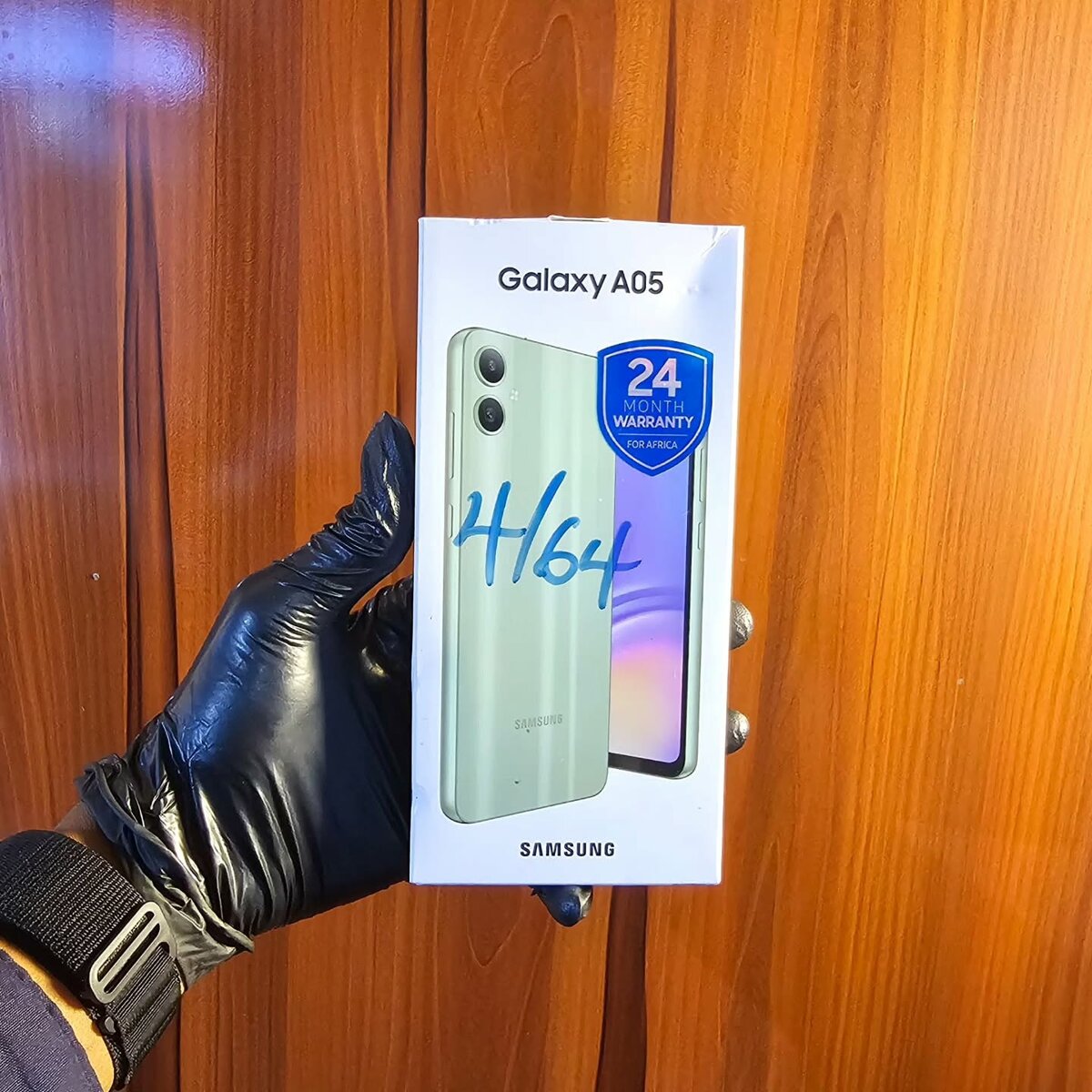Samsung Galaxy A05 écran 6.7 HD+ 720×1600 4G Dual SIM, 4 Go RAM 64 Go ROM, Android 13 One UI Core 4.1, caméra 50 MP + 2 MP selfie 8 MP, GPS Bluetooth USB, batterie 5000 mAh, dimensions 168.8×78.2×8.8 mm, poids 195 g, couleur blanc.