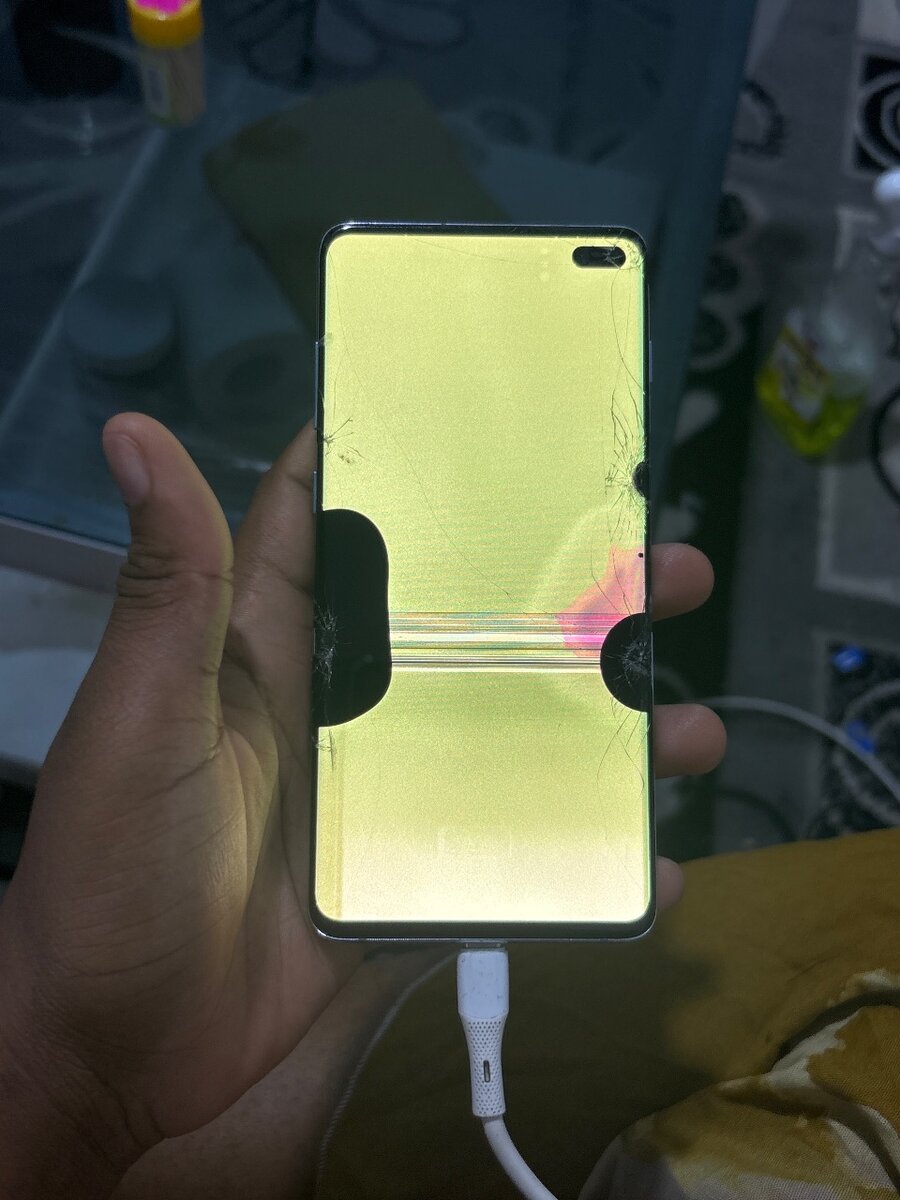 Samsung Galaxy S10 avec écran cassé. Parfait pour pièces de rechange ou réparation. Profitez de ses autres fonctionnalités intactes!