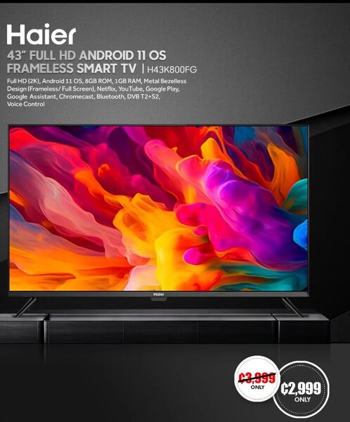 HAIER [ 43" FULL HD ANDROID 11 OS FRAMELESS SMART TV | H43K8