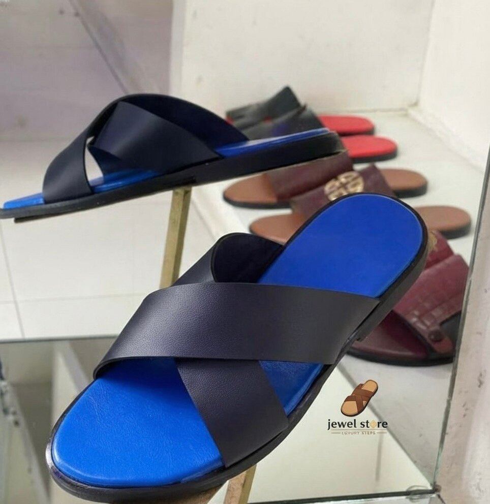 Sandale en cuir véritable , semelle bleue , qualité premium