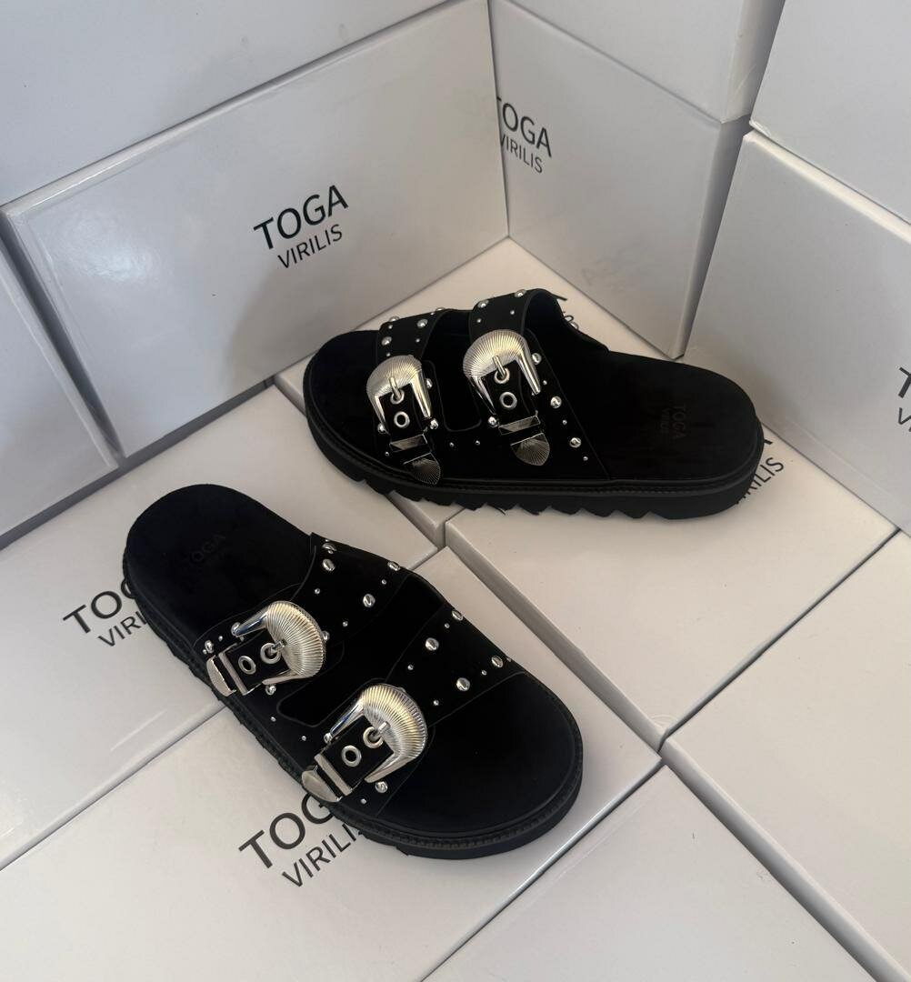 Découvrez les sandales élégantes à boucle de TOGA, parfaites pour un look audacieux et original. Avec des détails métalliques et un design confortable, ces sandales sont idéales pour ajouter une touche unique à votre tenue estivale. Fabriquées pour le style et le confort, elles sont votre allié mode cet été.